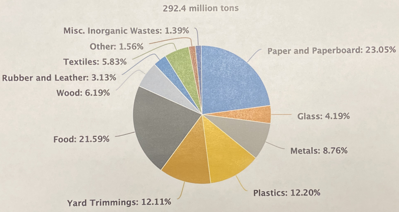 In 2018, the U.S. EPA (Environmental Protection Agency) published the following information (Figure 1) about the total amount of municipal solid waste generated. Although waste types vary widely by region, such as yard waste, these averages help characterize the nature of solid waste in the United States.