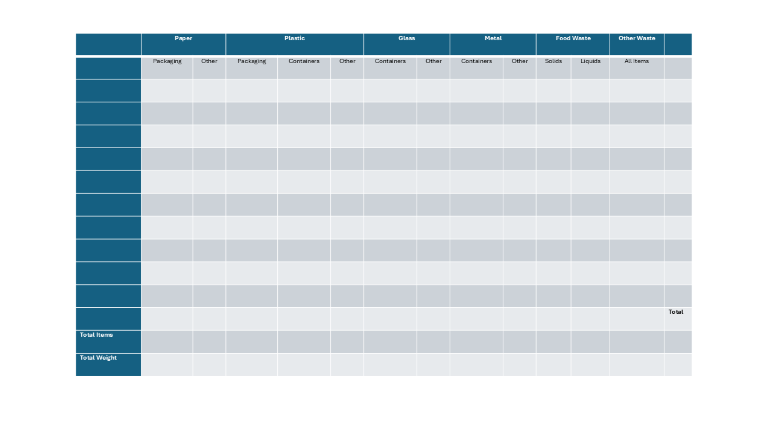 1. Weighing the containers before you start will allow to easily determine the amount of solid and liquid food waste you disposed of over the three-day period. Simply weigh the full containers and subtract the weight of the empty container to determine the total weight of your food waste.