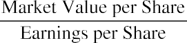 price/earnings (P/E) ratio company’s stock price divided by the company’s earnings per share; indicates the amount investors are willing to pay for one dollar of earnings