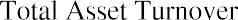 Total asset turnover indicates the number of sales dollars produced by every dollar invested in capital assets—in other words, how efficiently the company is using its capital assets to generate sales. It is computed as shown: