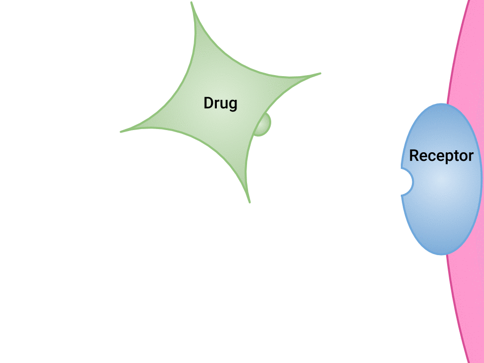Pharmacodynamics refers to the effects of drugs in the body and the mechanism of their action. As a drug travels through the bloodstream, it exhibits a unique affinity for a drug-receptor site, meaning how strongly it binds to the site. Drugs and receptor sites create a lock and key system (see Figure 1.1[1]) that affect how drugs work and the presence of a drug in the bloodstream after it is administered. This concept is broadly termed as drug bioavailability.