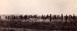 Military strategy shifted in 1864. The new tactics of “hard war” evolved slowly, as restraint toward southern civilians and property ultimately gave way to a concerted effort to demoralize southern civilians and destroy the southern economy. Grant’s successes at Vicksburg and Chattanooga, Tennessee (November 1863), and Meade’s cautious pursuit of Lee after Gettysburg prompted Lincoln to promote Grant to general-in-chief of the Union army in early 1864. This change in command resulted in some of the bloodiest battles of the Eastern Theater. Grant’s Overland Campaign, including the Battle of the Wilderness, the Battle of Cold Harbor, and the siege of Petersburg, demonstrated Grant’s willingness to tirelessly attack the ever-dwindling Army of Northern Virginia. By June 1864, Grant’s army surrounded the Confederate city of Petersburg, Virginia. Siege operations cut off Confederate forces and supplies from the capital of Richmond. Meanwhile out west, Union armies under the command of William Tecumseh Sherman implemented hard war strategies and slowly made their way through central Tennessee and northern Georgia, capturing the vital rail hub of Atlanta in September 1864.