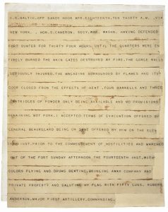 In his inaugural address, Lincoln declared secession “legally void.”[10] While he did not intend to invade southern states, he would use force to maintain possession of federal property within seceded states. Attention quickly shifted to the federal installation of Fort Sumter in Charleston, South Carolina. The fort was in need of supplies, and Lincoln intended to resupply it. South Carolina called for U.S. soldiers to evacuate the fort. Commanding officer Major Robert Anderson refused. On April 12, 1861, Confederate Brigadier General P. G. T. Beauregard fired on the fort. Anderson surrendered on April 13 and the Union troops evacuated. In response to the attack, President Abraham Lincoln called for seventy-five thousand volunteers to serve three months to suppress the rebellion. The American Civil War had begun.