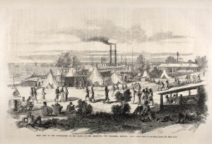 In May 1861, General Benjamin F. Butler went over his superiors’ heads and began accepting freedom-seeking escapees who came to Fort Monroe in Virginia. In order to avoid answering whether these people were free, Butler reasoned called them “contraband of war,” and he had as much a right to seize them as he did to seize enemy horses or cannons.[14] Later that summer Congress affirmed Butler’s policy in the First Confiscation Act. The act left “contrabands,” as these runaways were called, in a state of limbo. Once an enslaved person escaped to Union lines, their enslaver’s claim was nullified. She was not, however, a free citizen of the United States. Runaways lived in “contraband camps,” where disease and malnutrition were rampant. Women and men were required to perform the drudge work of war: raising fortifications, cooking meals, and laying railroad tracks. Still, life as a contraband offered a potential path to freedom, and thousands of enslaved people seized the opportunity.