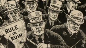 In the late nineteenth and early twentieth centuries, a trust was a monopoly or cartel associated with the large corporations of the Gilded and Progressive Eras who entered into agreements—legal or otherwise—or consolidations to exercise exclusive control over a specific product or industry under the control of a single entity. Certain types of monopolies, specifically for intellectual property like copyrights, patents, trademarks, and trade secrets, are protected under the Constitution “to promote the progress of science and useful arts,” but for powerful entities to control entire national markets was something wholly new, and, for many Americans, wholly unsettling.
