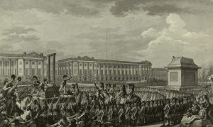 Initially, nearly all Americans had praised the French Revolution. Towns all over the country hosted speeches and parades on July 14 to commemorate the day it began. Women had worn neoclassical dress to honor republican principles, and men had pinned revolutionary cockades to their hats. John Randolph, a Virginia planter, named two of his favorite horses Jacobin and Sans-Culotte after French revolutionary factions.[24]