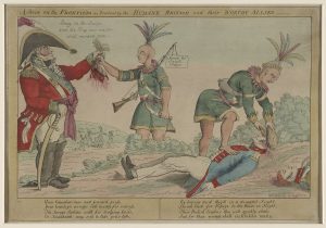 Jefferson’s foreign policy, particularly the Embargo Act of 1807, elicited the most outrage from his Federalist critics. As Napoleon Bonaparte’s armies moved across Europe, Jefferson wrote to a European friend that he was glad that God had “divided the dry lands of your hemisphere from the dry lands of ours, and said ‘here, at least, be there peace.’”[14] Unfortunately, the Atlantic Ocean soon became the site of Jefferson’s greatest foreign policy test, as England, France, and Spain refused to respect American ships’ neutrality. The greatest offenses came from the British, who resumed the policy of impressment, seizing thousands of American sailors and forcing them to fight for the British navy.