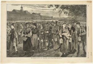 Catholic and Jewish Germans transformed regions of the republic. Although records are sparse, New York’s Jewish population rose from approximately five hundred in 1825 to forty thousand in 1860.[46] Similar gains were seen in other American cities. Jewish immigrants hailing from southwestern Germany and parts of occupied Poland moved to the United States through chain migration and as family units. Unlike other Germans, Jewish immigrants rarely settled in rural areas. Once established, Jewish immigrants found work in retail, commerce, and artisanal occupations such as tailoring. They quickly found their footing and established themselves as an intrinsic part of the American market economy. Just as Irish immigrants shaped the urban landscape through the construction of churches and Catholic schools, Jewish immigrants erected synagogues and made their mark on American culture.