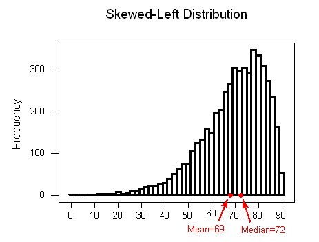 – For skewed left distributions and/or datasets with low outliers: ¯x <M